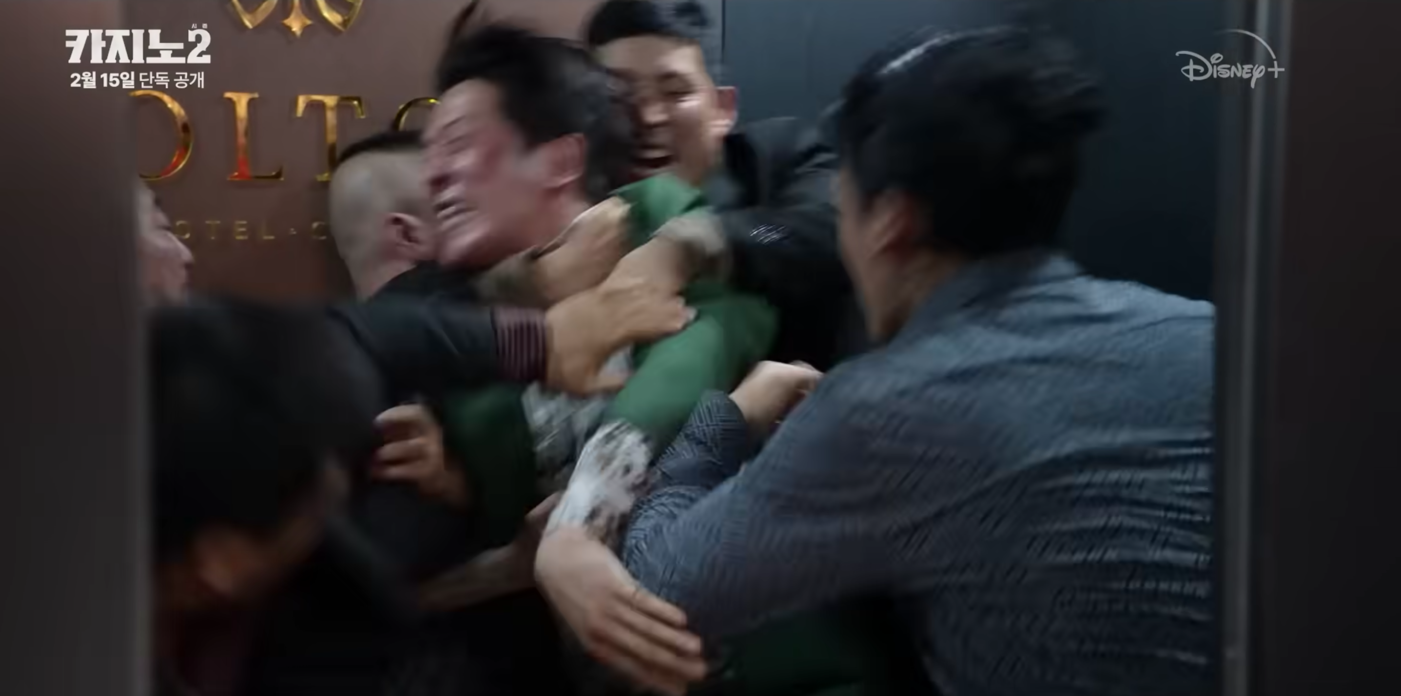 볼튼호텔 카지노에서 서태석과 중국 갱들이 싸우는 모습이 나옵니다. 서로 총격전을 하면서 피튀기는 싸움을 하는데 이때 서태석의 반대편에 있는 사람을 보면 중국 갱의 조직원인 것을 알 수 있습니다. 시즌1에서 암살자 존이 중국 갱의 조직원을 죽인 장면이 있었는데 이때 차무식에게 죽인 사진을 보낸 것으로 보아 중국갱과 차무식이 어떤 관계가 있었던 것으로 추측되기도 합니다. 그 사건과의 연장선인지 볼튼 호텔 카지노에서 총격전이 일어나는 것을 알 수 있습니다.